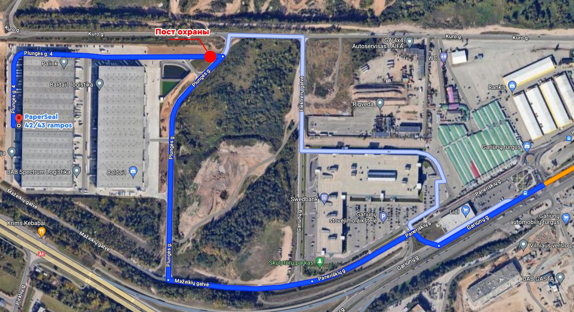 Предоставляется карта с точным местоположением. Проезжая pro Пост охраны вам нужно будет остановиться на КПП и подойдя сказать, что вы едете в UAB Supakuota.